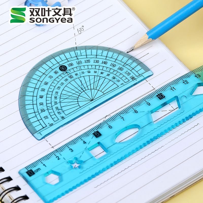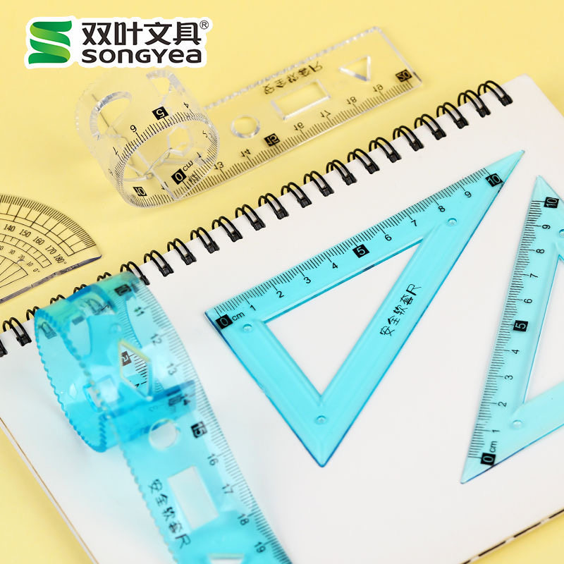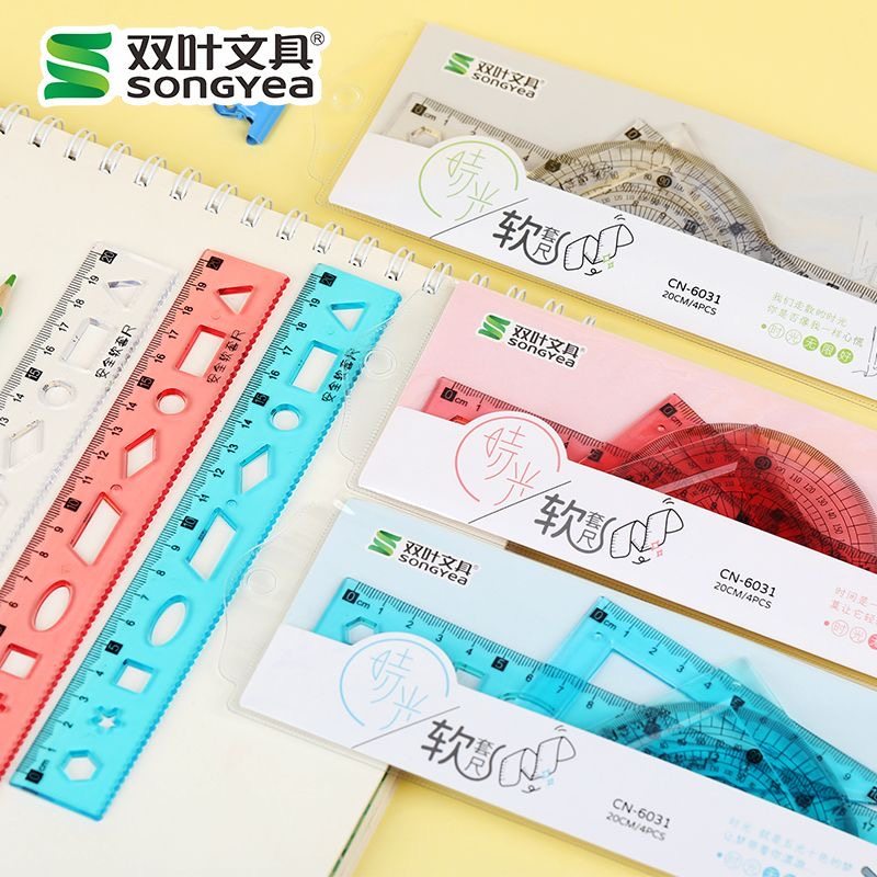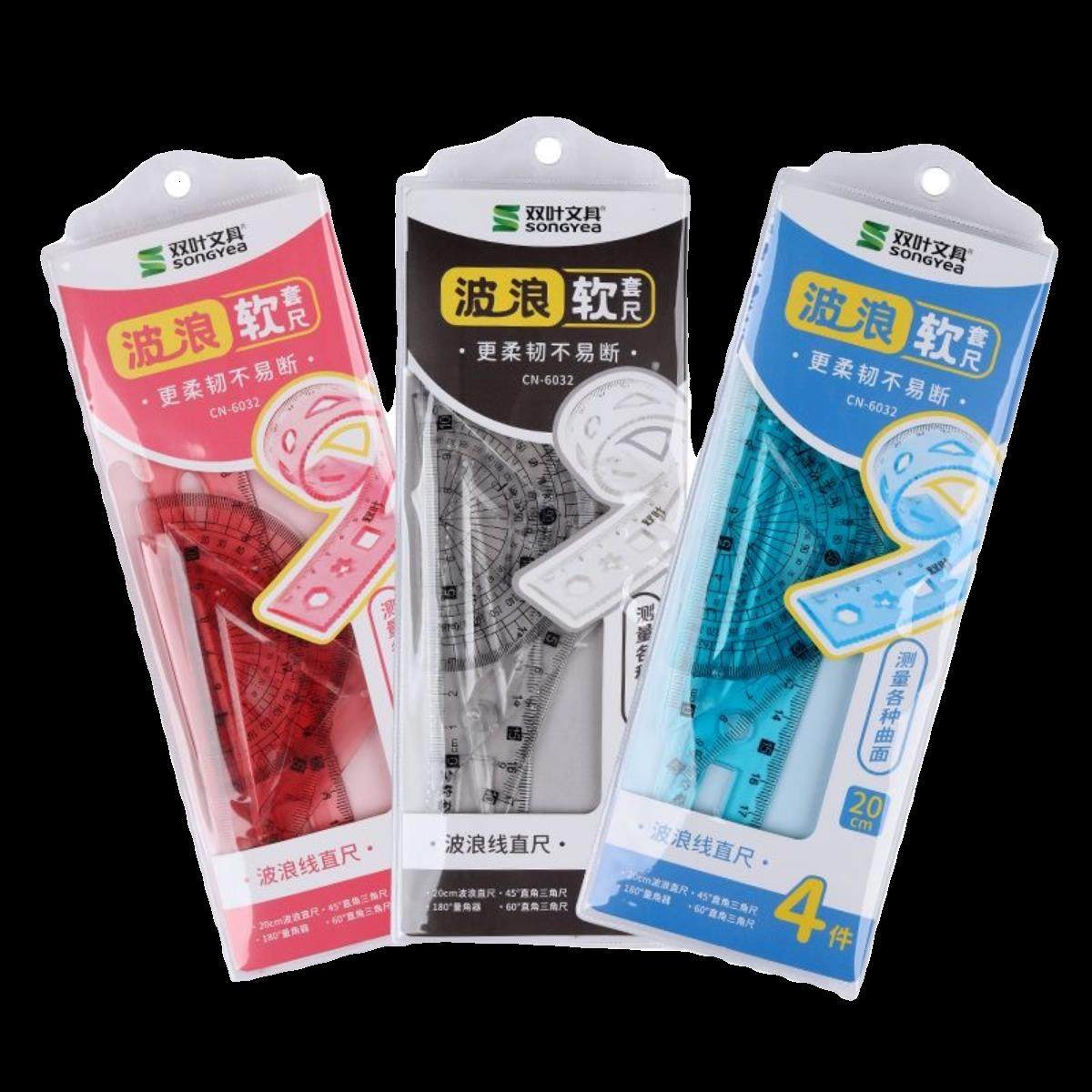 小学生软套尺四件套20cm直尺三角尺量角器多功能三角板套装 开学波浪