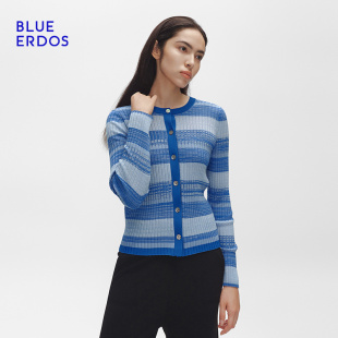外搭航海风圆领针织开衫 BLUE 多巴胺条纹修身 春季 短外套 ERDOS