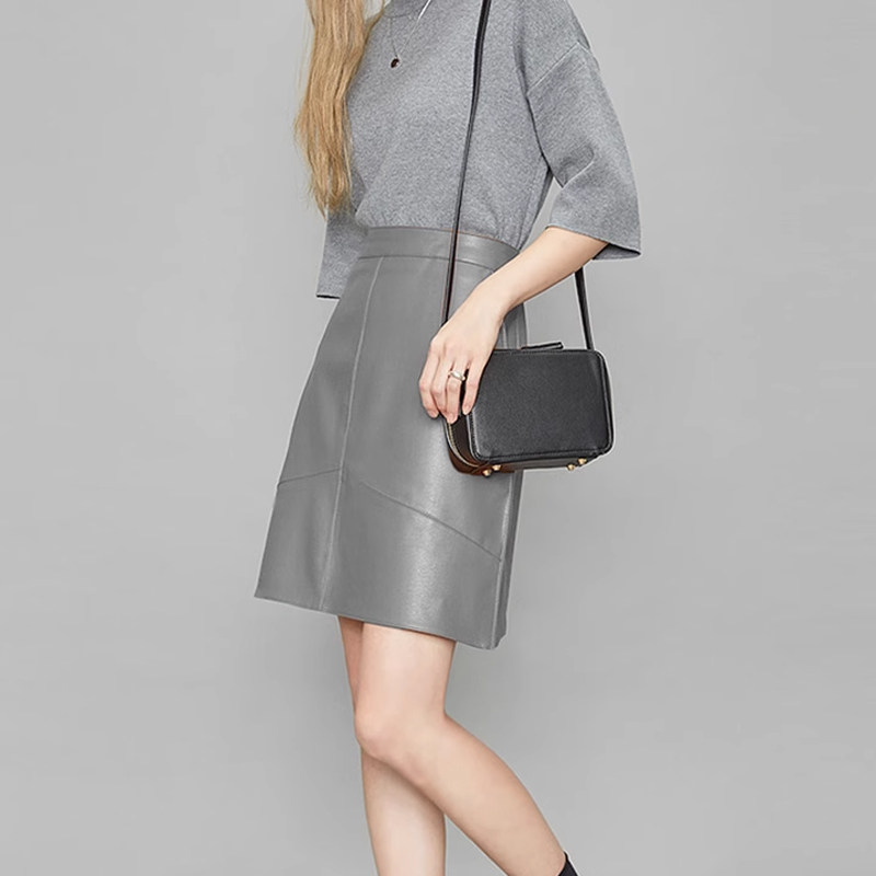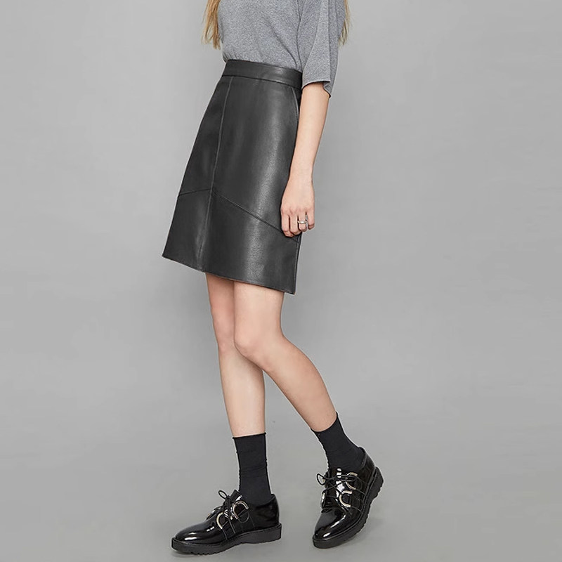 秋冬绵羊皮高腰真皮小皮裙港味半身裙女韩版 短裙 a字包臀ins超火