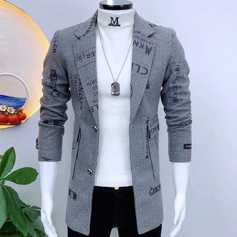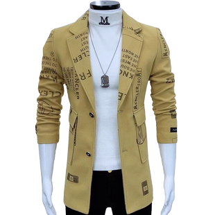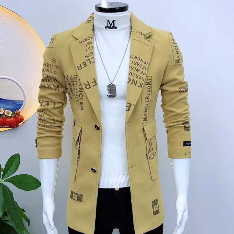 潮流网红中长款 秋冬外套男炸街气质时尚 修身 毛呢大衣韩版 风衣 男士
