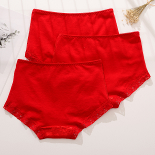 中腰平角结婚喜庆红裤 女蝶安芬纯棉大红色内裤 头 本命年内裤 2条装