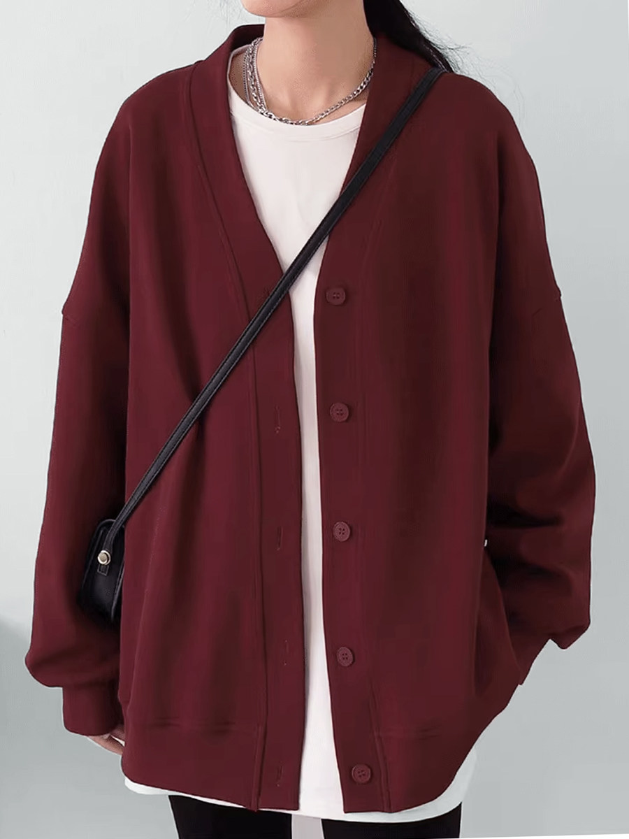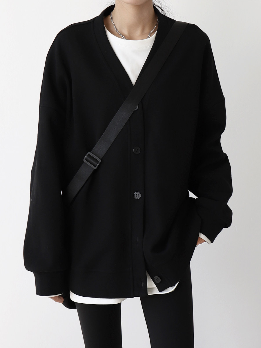 珠地棉外套叠穿上衣2024新春季 CHICVEN休闲百搭宽松V领中长款 开衫