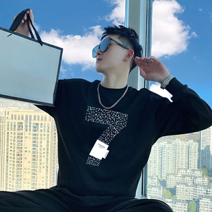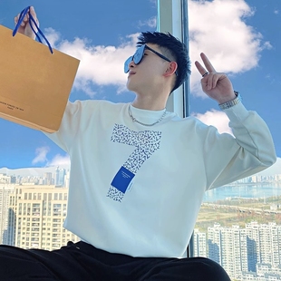 限定私服松弛休闲感撞色套头印花卫衣 西海岸girl 你 懒懒llan