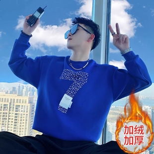打底衫 初高中生上衣大码 加绒秋冬季 班尼路S&K藏青色圆领卫衣男款