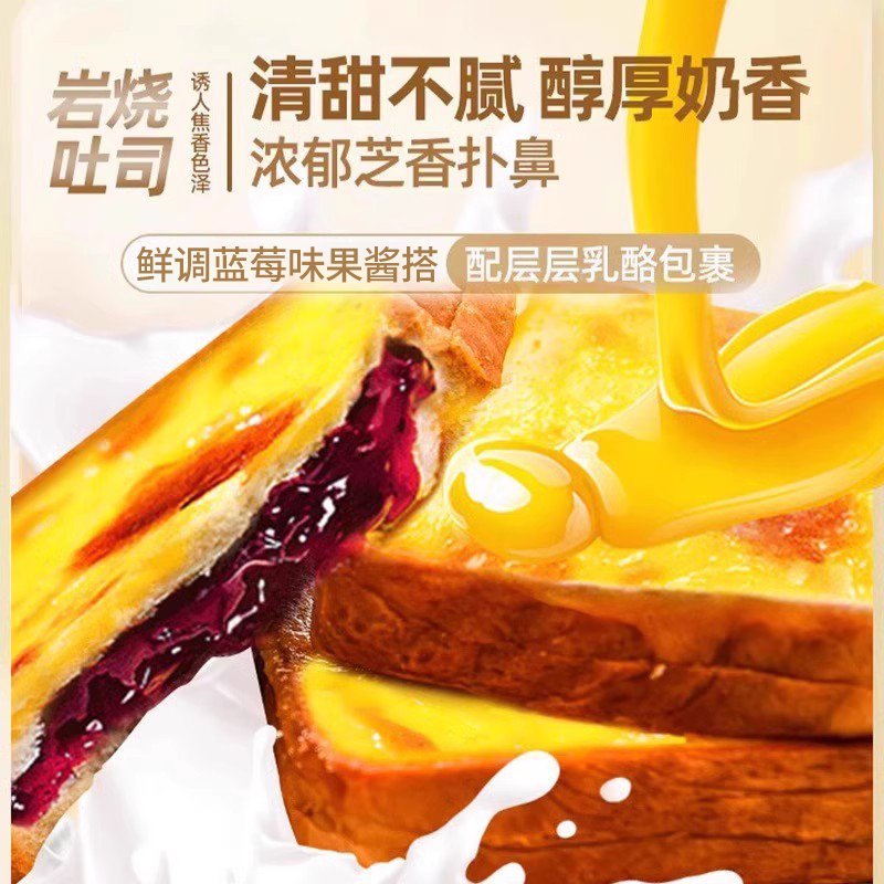 蓝莓味岩烧吐司乳酪夹心面包整箱早餐零食休闲小吃食品三明治蛋糕