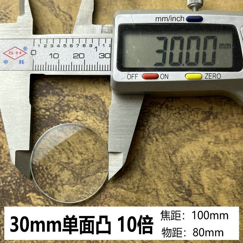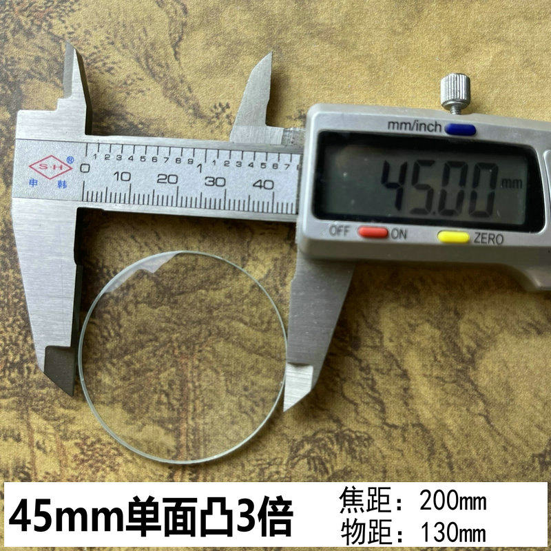 包邮 物理实验单面凸4.5厘米玻璃放大镜片 透镜 3公分40MM10倍平凸
