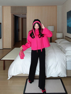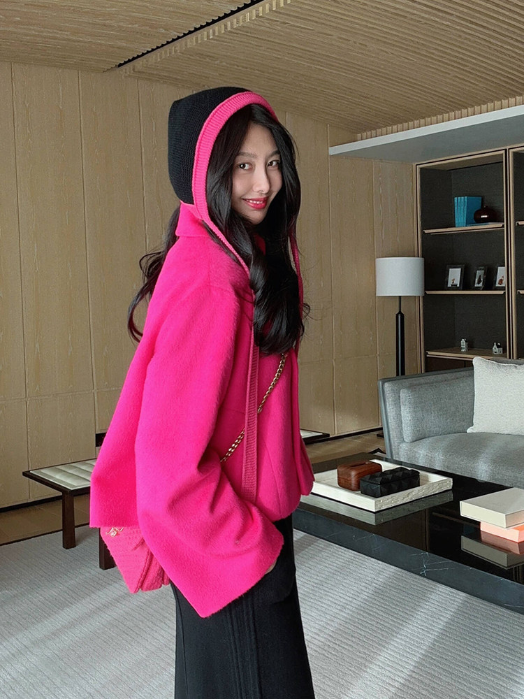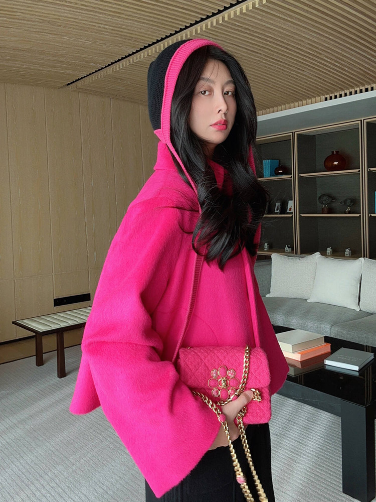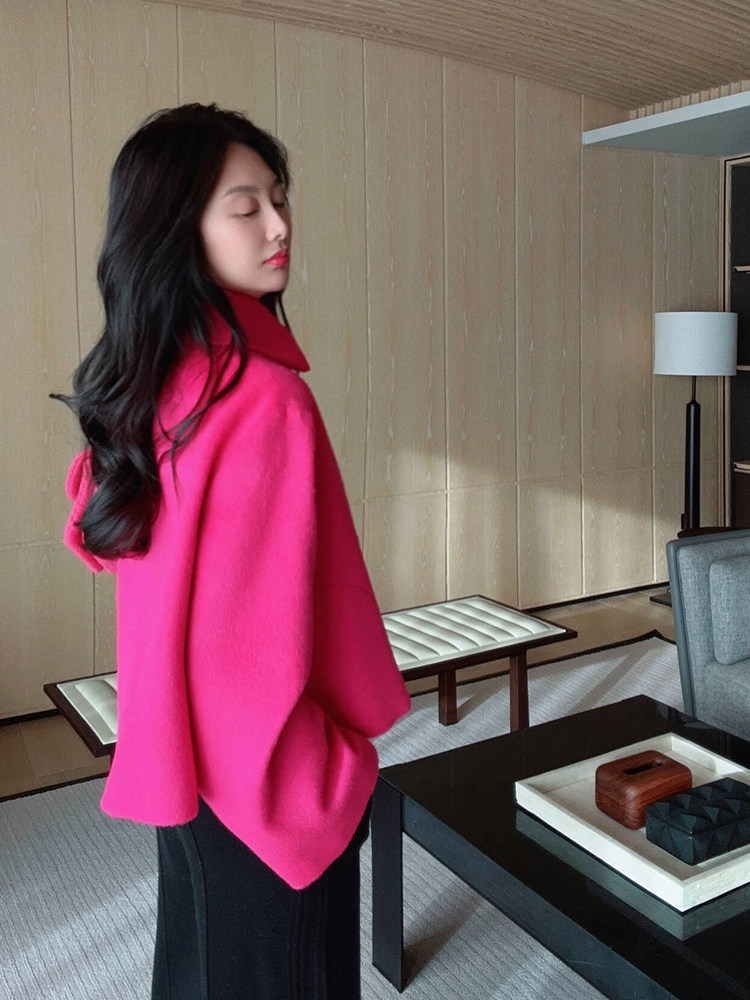 短大衣 荧光玫粉色羊驼毛混羊毛青春无敌经典 TRACY CHU