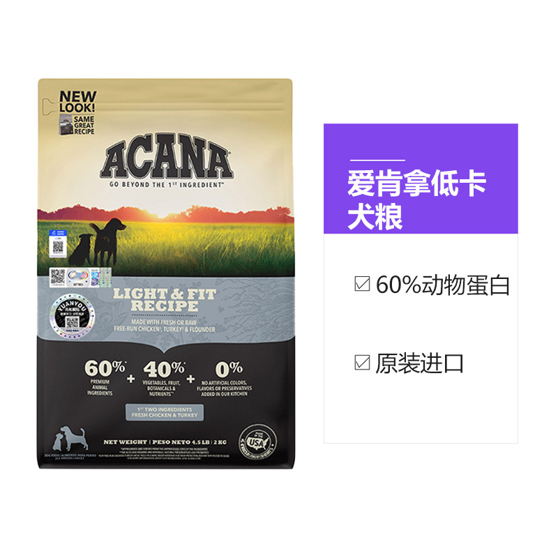 爱肯拿美国减肥犬粮2KG低卡干粮 40年畅销品牌 自营