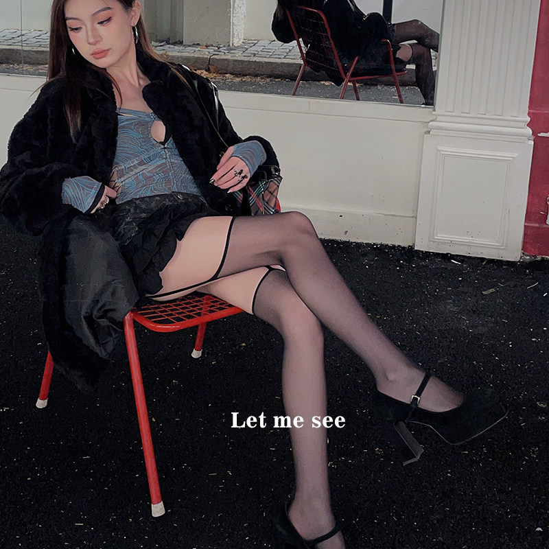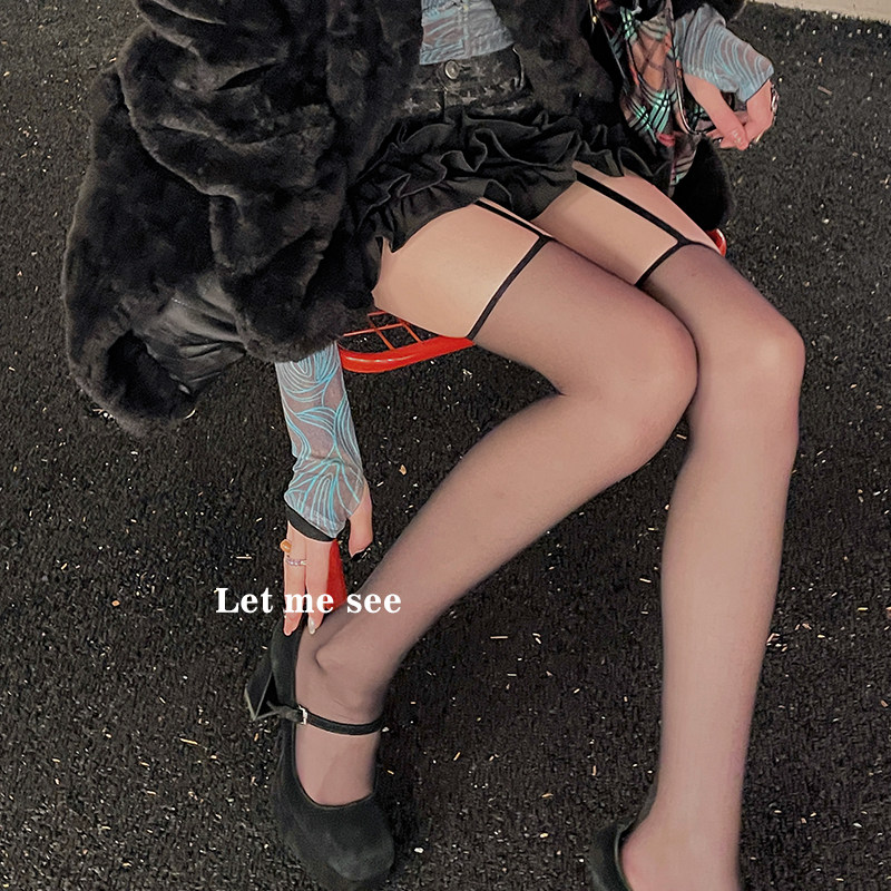 网红性感纯欲风长筒薄款 SEE 辣妹黑丝吊带丝袜一体式 个性 LET