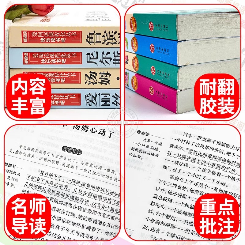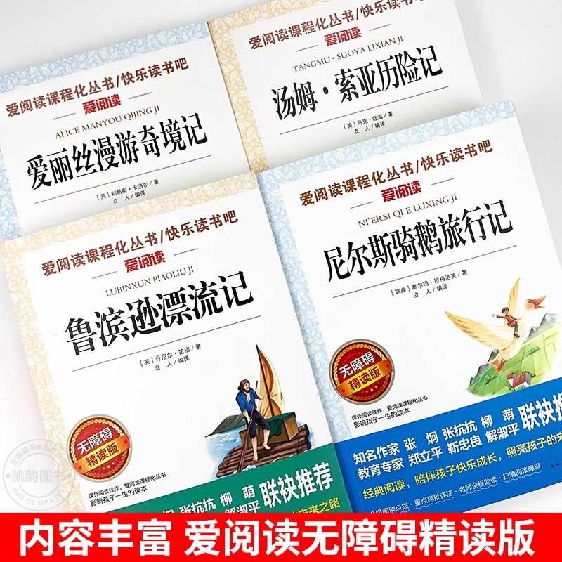 汤姆索亚历险记尼尔斯骑鹅旅行记爱丽丝漫游奇境罗冰孙 课外书快乐读书吧全套4册老师推荐 鲁滨逊漂流记原著完整版 六年级下册必读