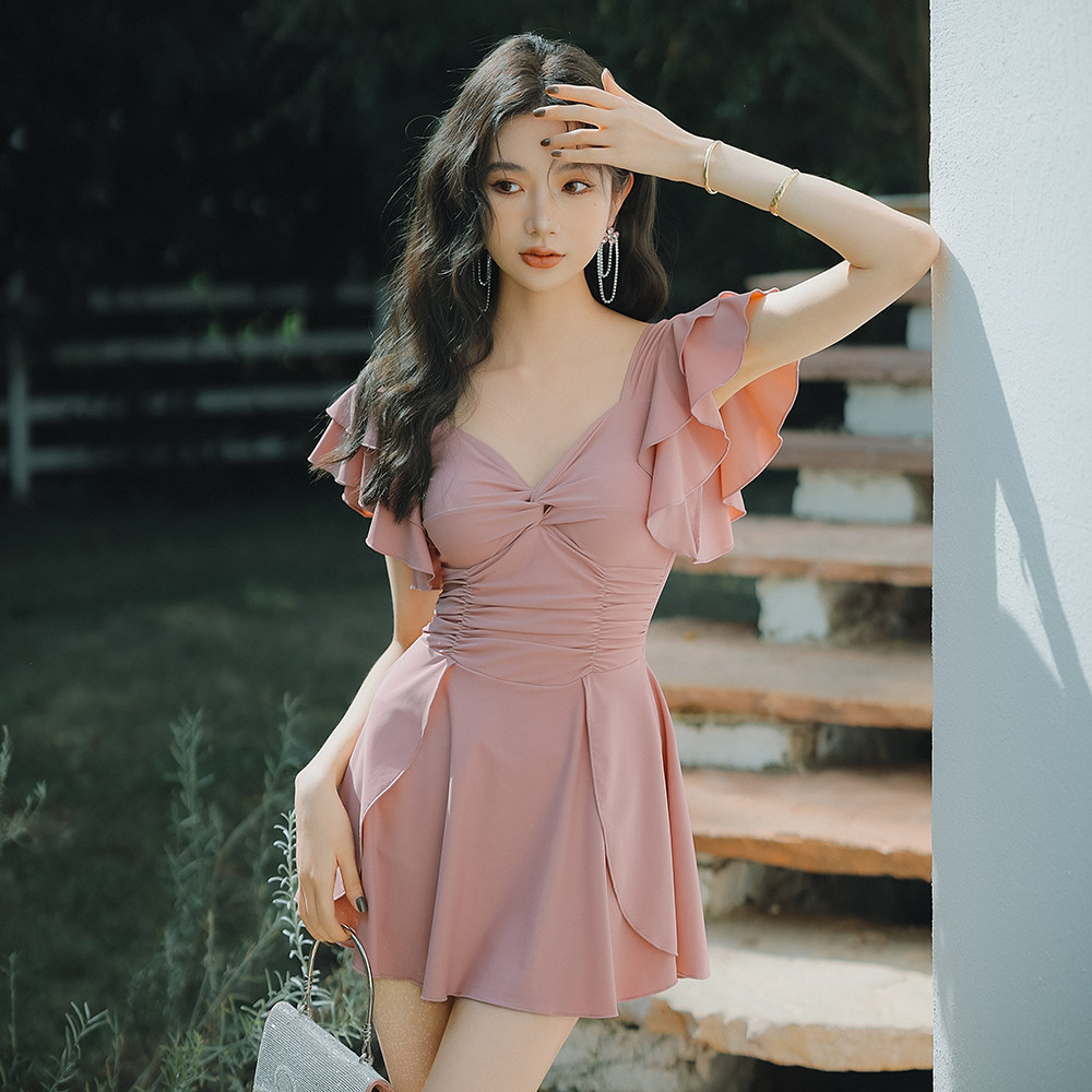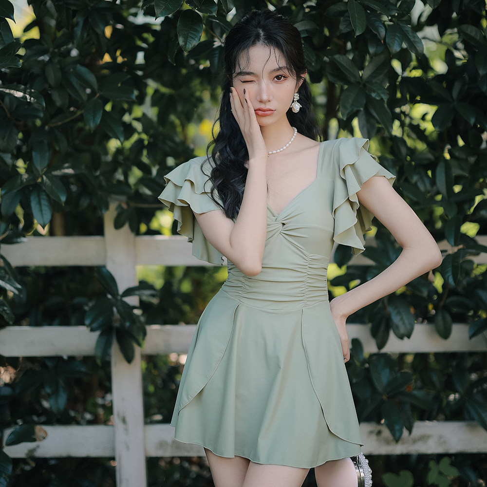 绝美微胖遮肉连体平角小个子泳装 泳衣女泡温泉高级感2025新款 女款