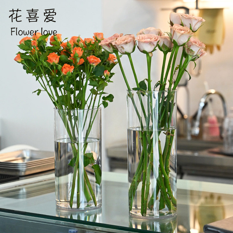 新款 亚克力透明养花桶鲜花插花桶圆形醒花桶花店居家花瓶防摔花器