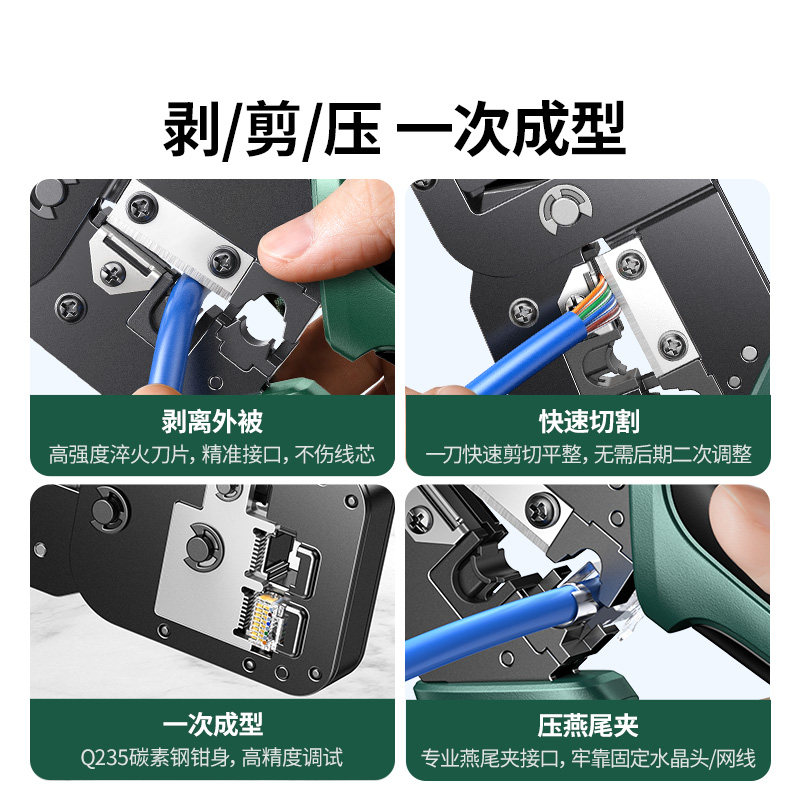 绿联网线钳子水晶头压线钳专业级七类超五六6八类网络夹线钳多功能工具套装 电话宽带8P接头rj45压剪剥接线钳