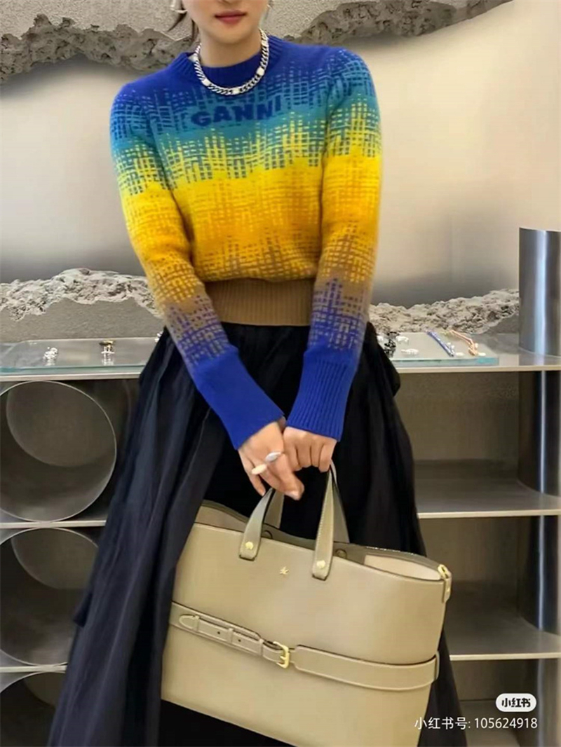 胸前LOGO休闲短款 GANNI沈梦辰同款 彩色毛衣 小喜家 会员专享