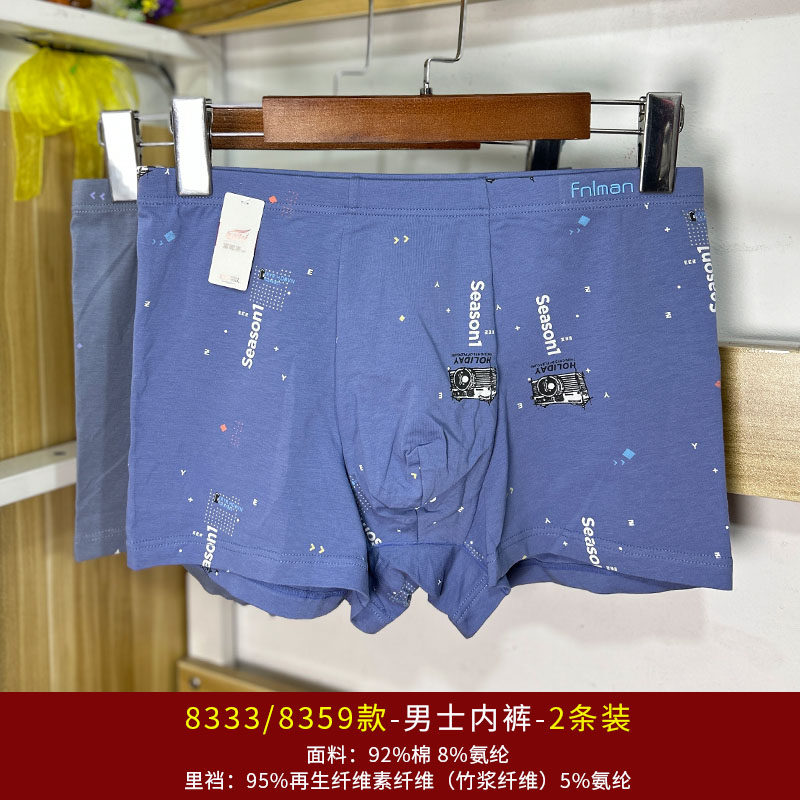 肥佬四角裤 2条装 头加肥加大码 男中腰弹力棉质平角短裤 富妮来内裤