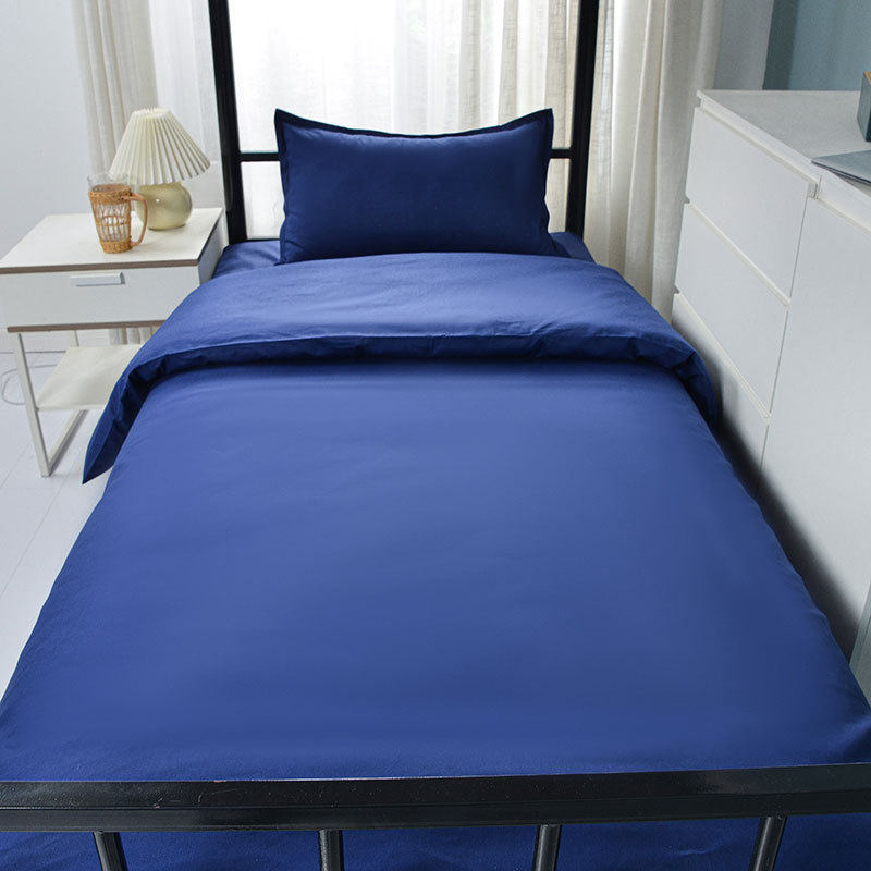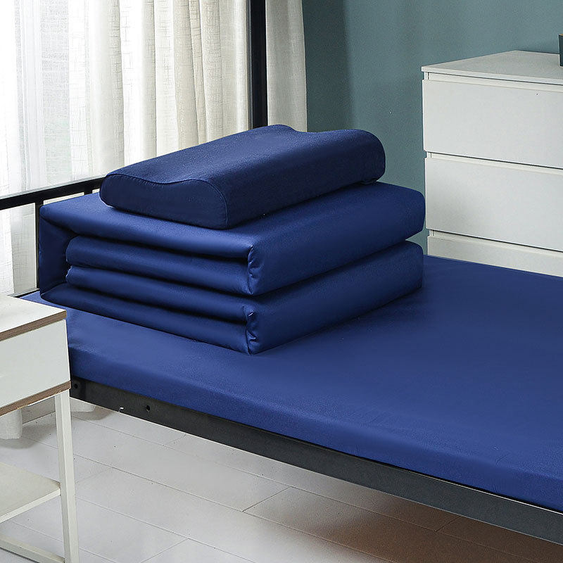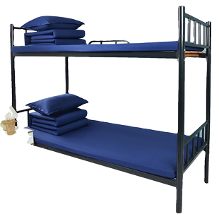 深蓝色纯棉三件套定制单人床单被套火焰蓝单位宿舍全棉四件套印字