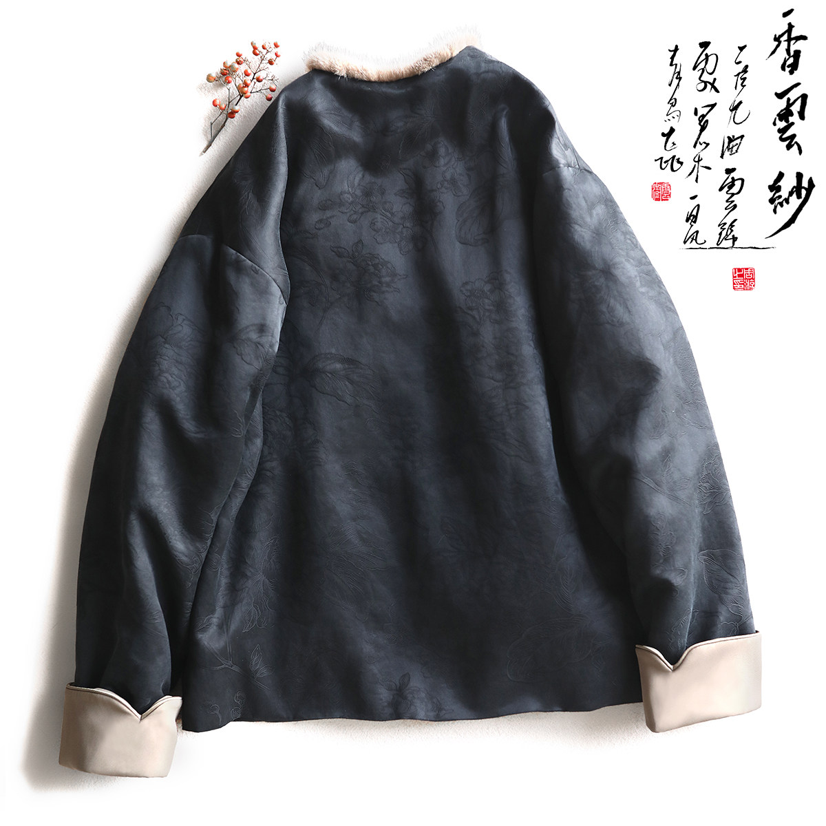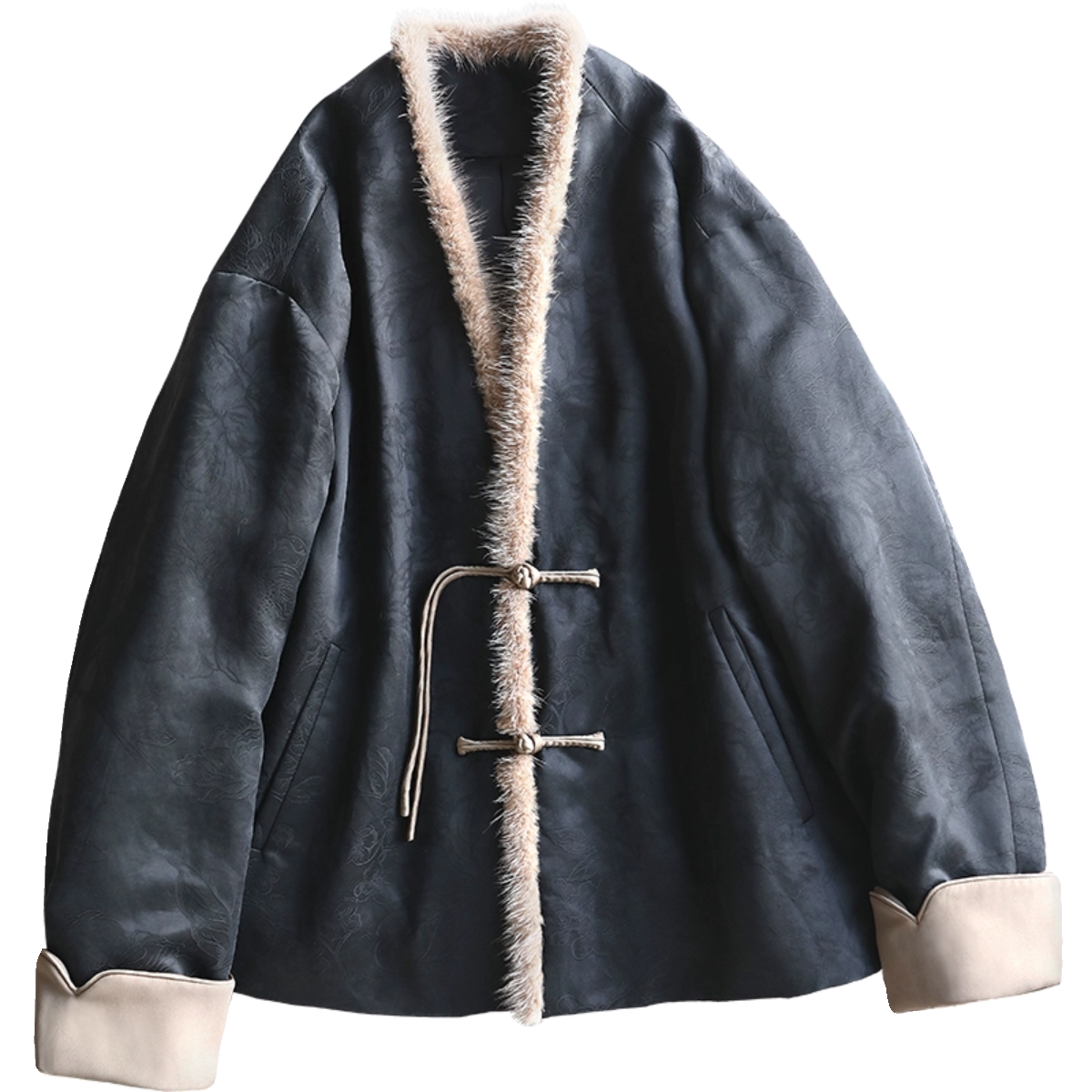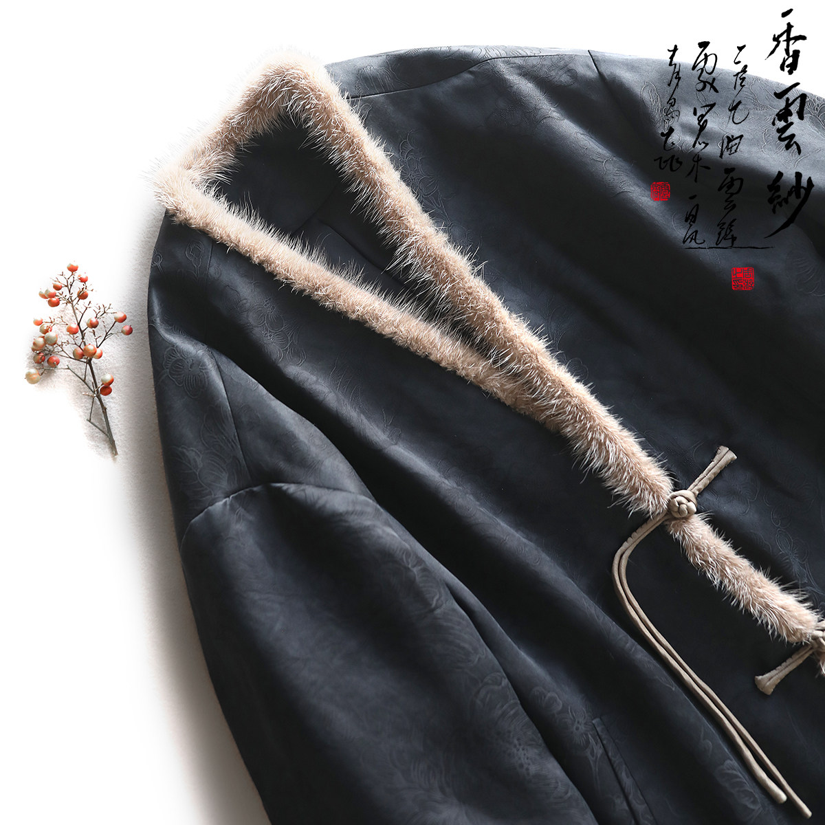 兔绒内里外套狐狸毛领提花国风加厚上衣 新中式 Lazy Didi碎玉如雪