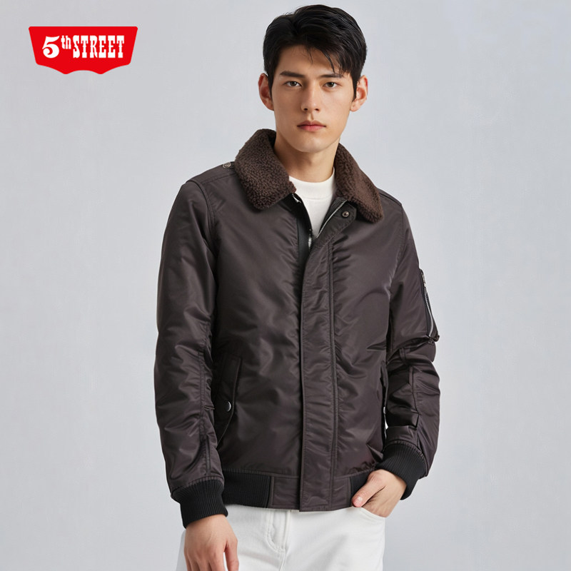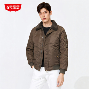 V37美拉德咖色设计感铆钉皮棉服男冬季 高街痞帅绒毛翻领加厚棉衣