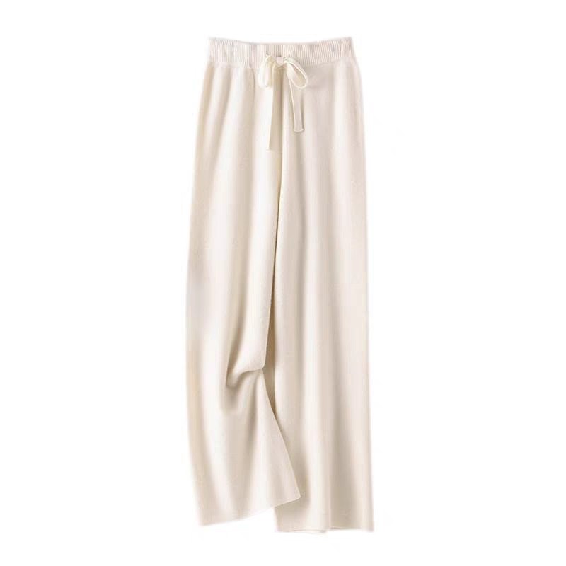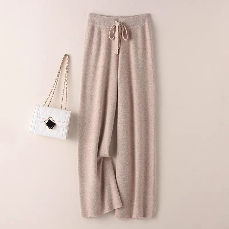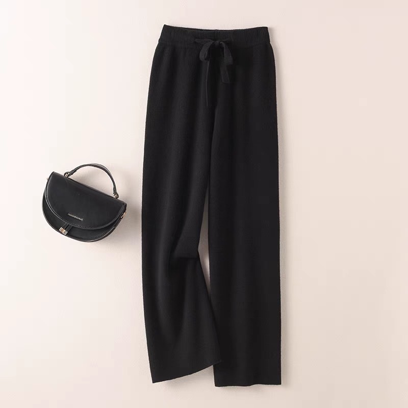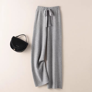 宽松高腰羊绒直筒加厚拖地长裤 秋冬100%纯色羊毛针织裤 女阔腿裤