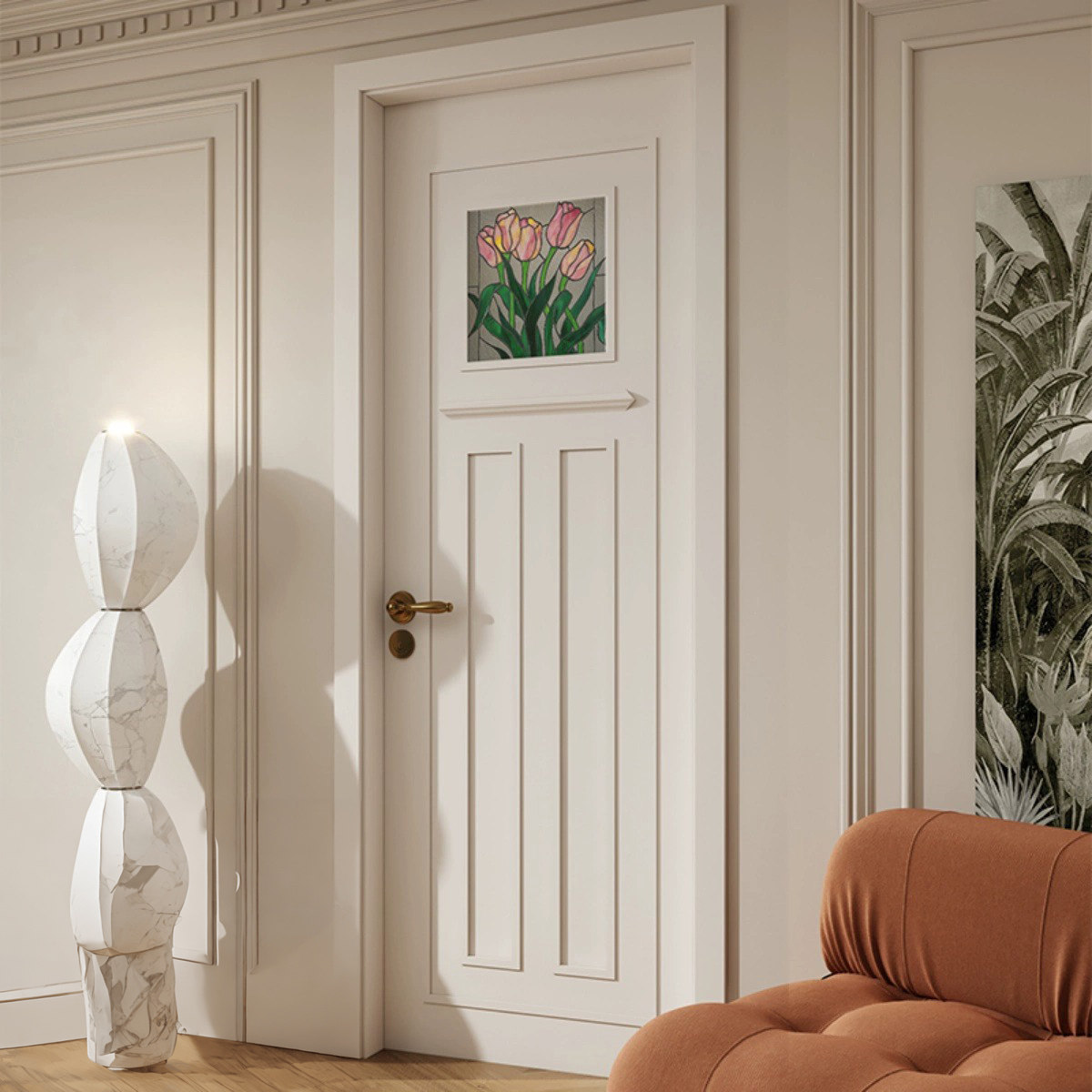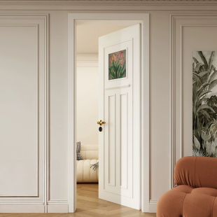卧室门玻璃简约轻法式 定制实木房间平开门推拉门阳台门复古实木门