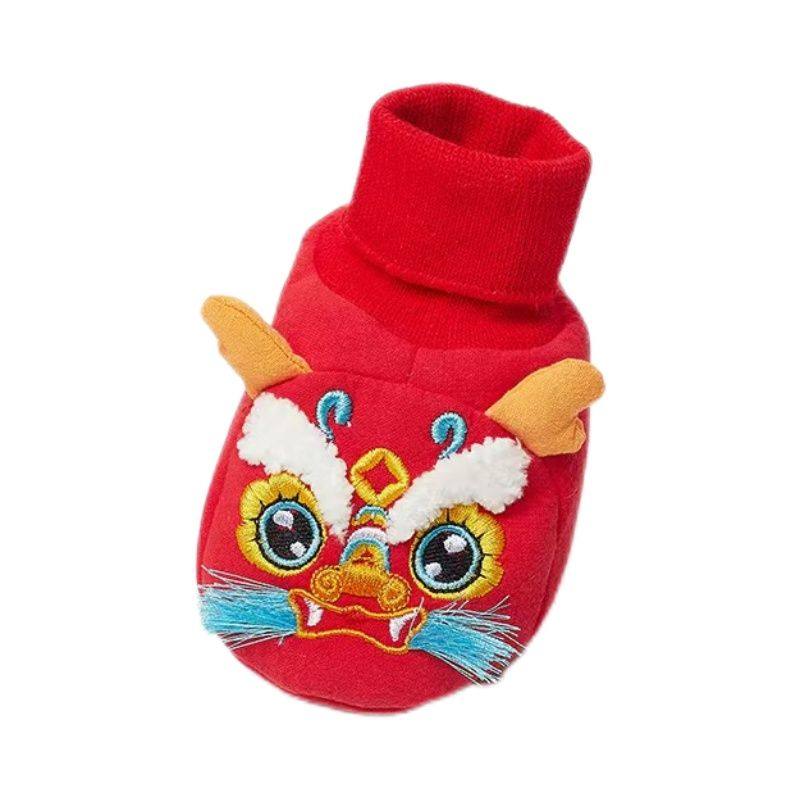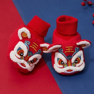 新年喜庆保暖地板袜鞋 宝宝秋冬加厚刺绣虎头软底棉鞋 新生儿室内鞋