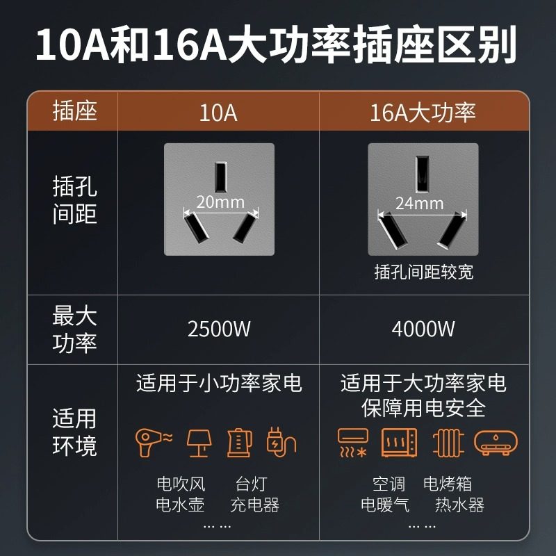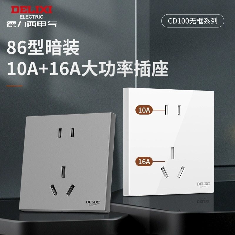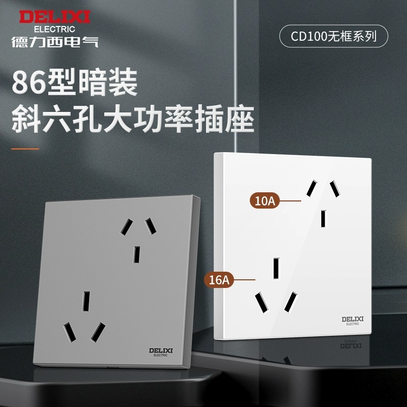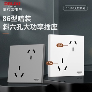 德力西错位斜16a六孔五孔插座热水器空调家用面板86型10a六孔插座