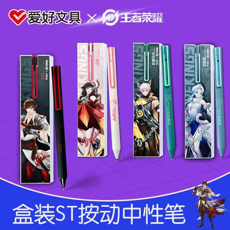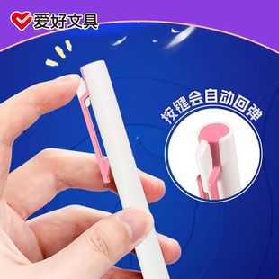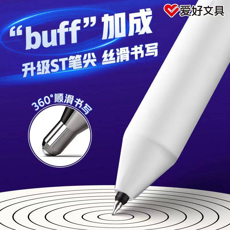 爱好文具享握按动中性笔ins子弹头0.5学生考试专用签字水性笔日系黑色墨蓝晶蓝红色自动弹簧按压碳素黑笔办公