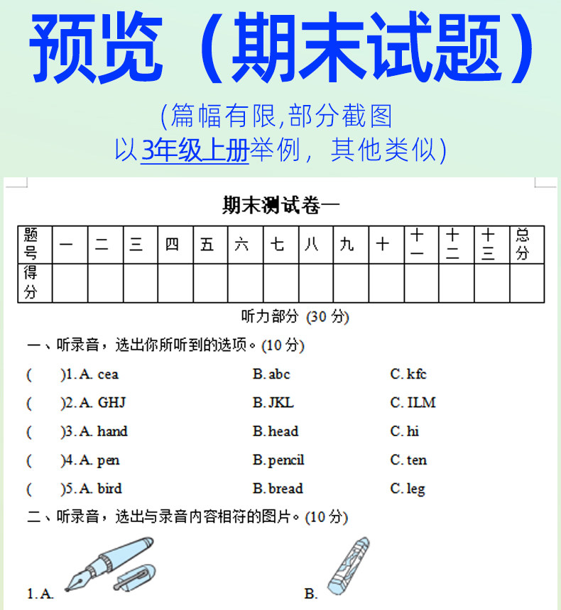 检测期中期末测试专项训练三四五六年级上册下册含答案听力音频电子版 pep小学英语试卷练习题试题同步练习单元 资料 人教版 2025新版