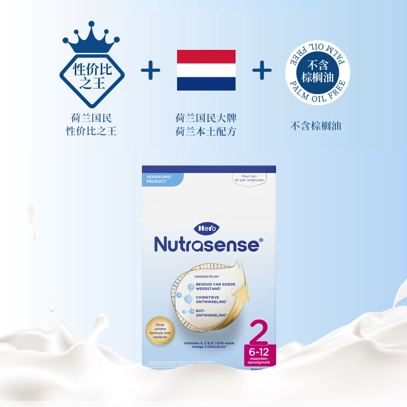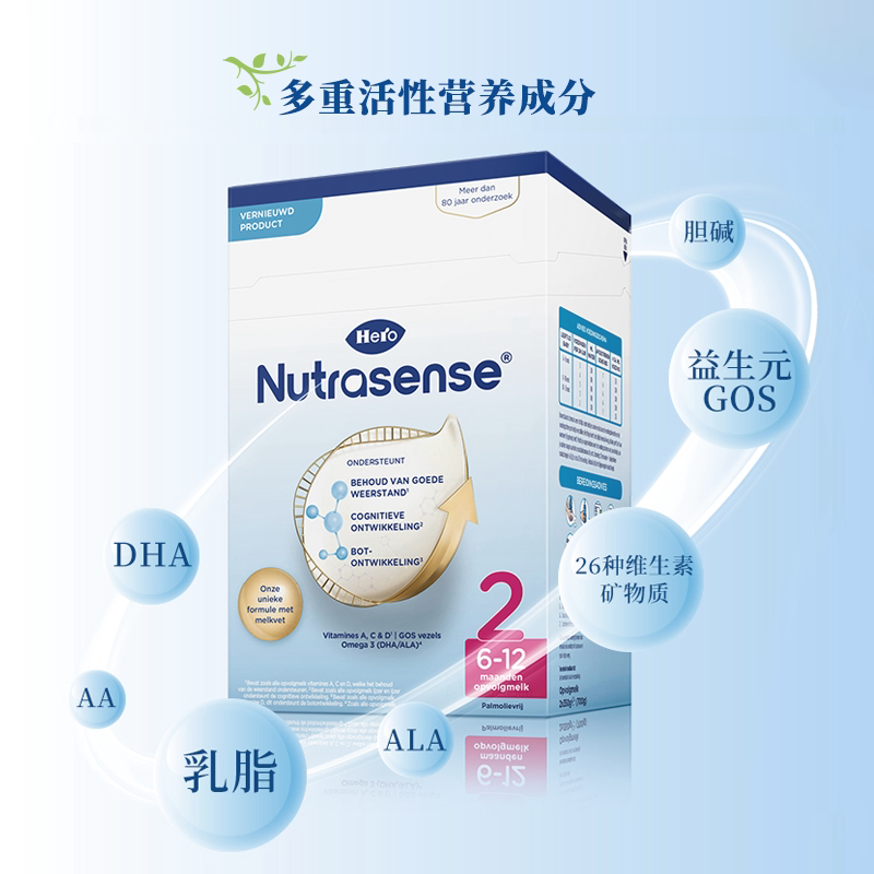 乳糖700g Herobaby荷兰婴儿奶粉2段DHA 盒 12月 自营