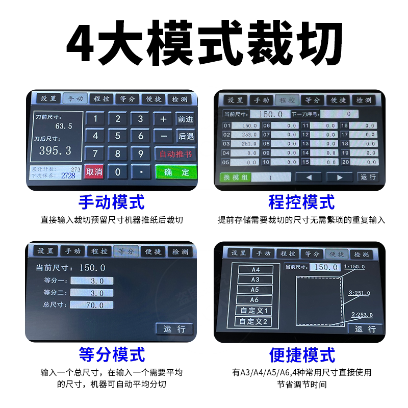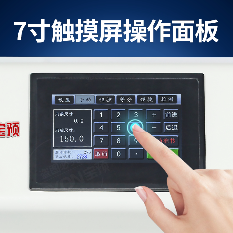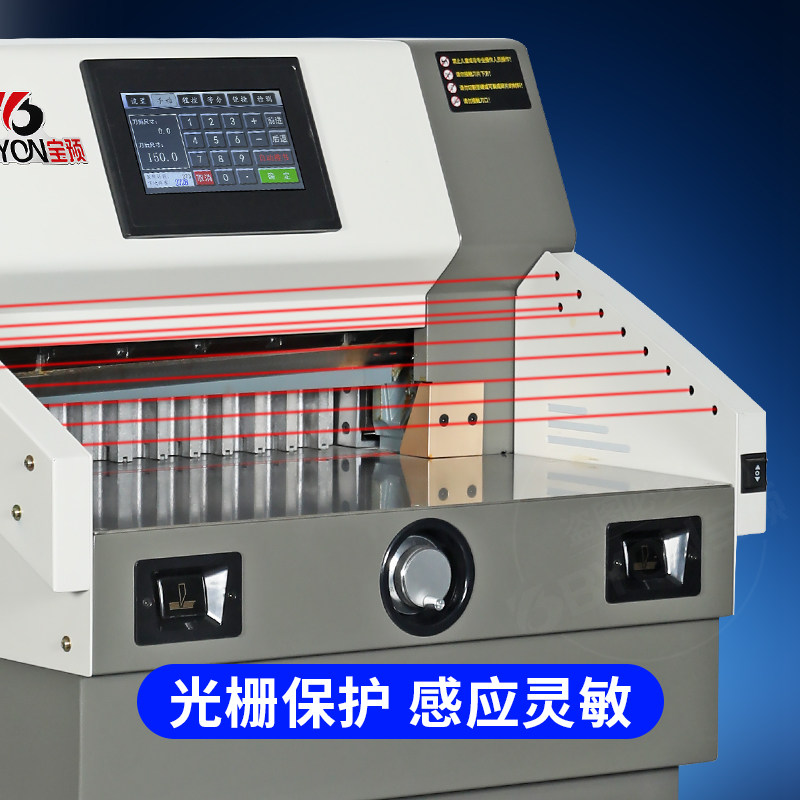 新款 7寸触屏BY490M电动切纸机书籍不干胶标书修边机图文广告静音程控名片分段裁纸刀8cm全自动裁纸机光电保护
