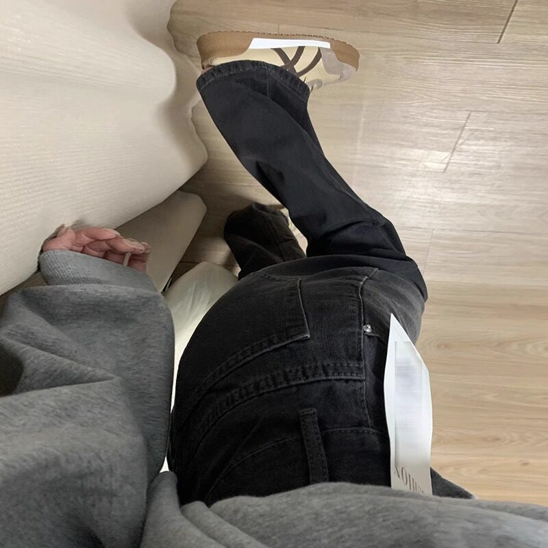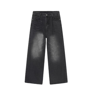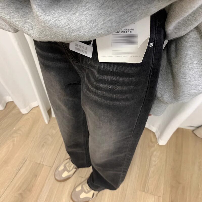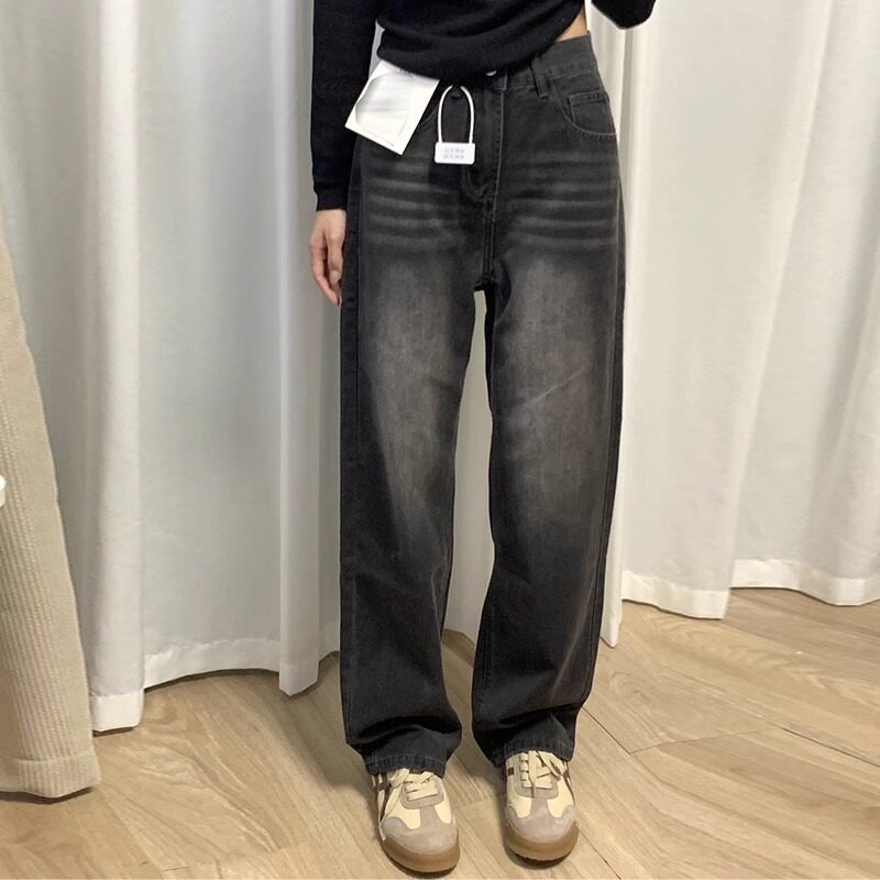 7290 胖mm高腰宽松阔腿长裤 043烟灰色直筒牛仔裤 大码 女新款