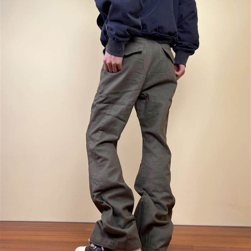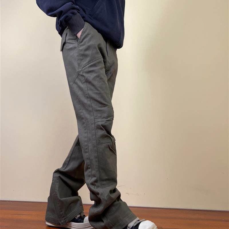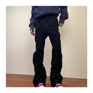 直筒微喇休闲裤 F383 裤 复古褶皱设计工装 男女 2023秋国潮原创美式