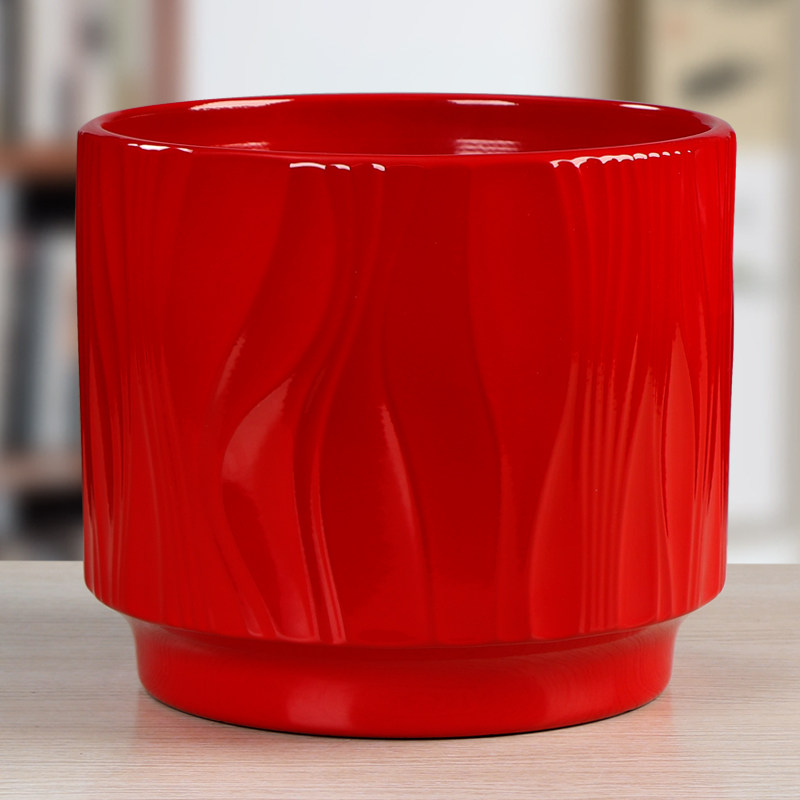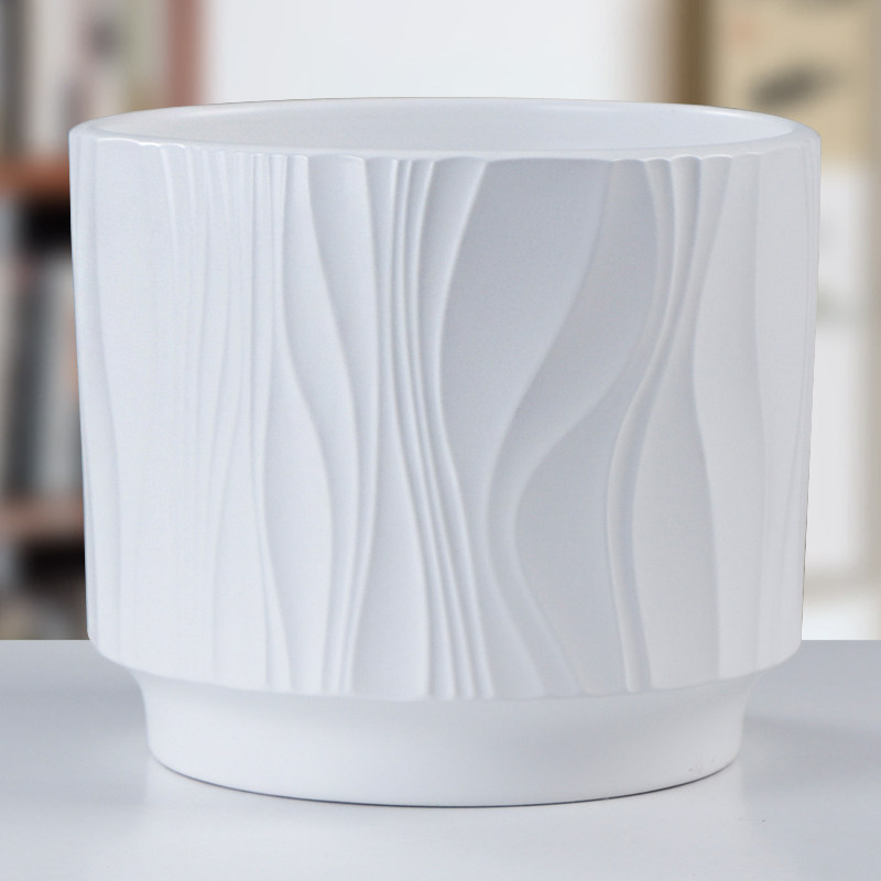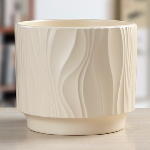 北欧简约波浪花盆陶瓷特大号带托盘绿萝蝴蝶兰家用阳台现代多肉盆
