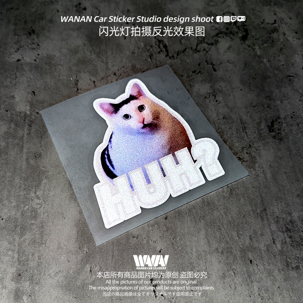 湾岸车贴个性 创意搞笑疑问猫反光贴纸车身车窗防水防晒划痕遮挡
