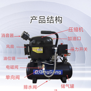无油空压机工业级空气压缩机大型喷漆高压220V小型冲气泵静音气泵