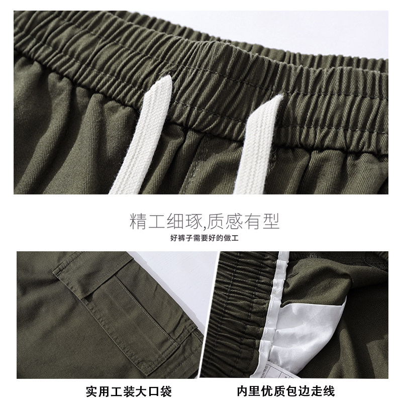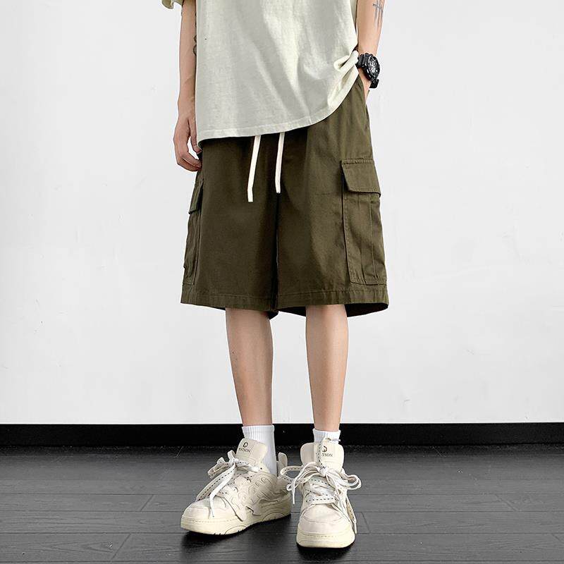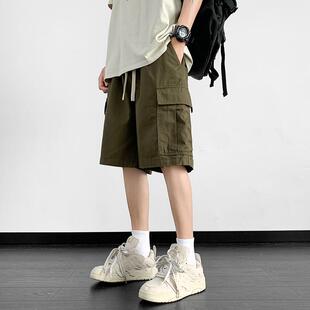 短裤 男夏季 潮流薄款 美式 休闲学生直筒裤 裤 宽松五分裤 子 军绿色工装