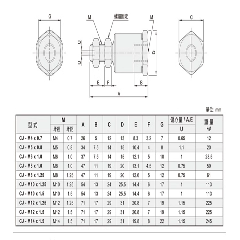 气立可浮动接头CJ 1.25 M14 M12 0.7 M16 0.8 M10 1.0