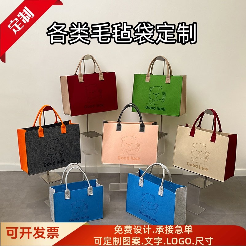 毛毡包手提袋来图定制印logo收纳布袋礼品袋大容量便携购物环保袋