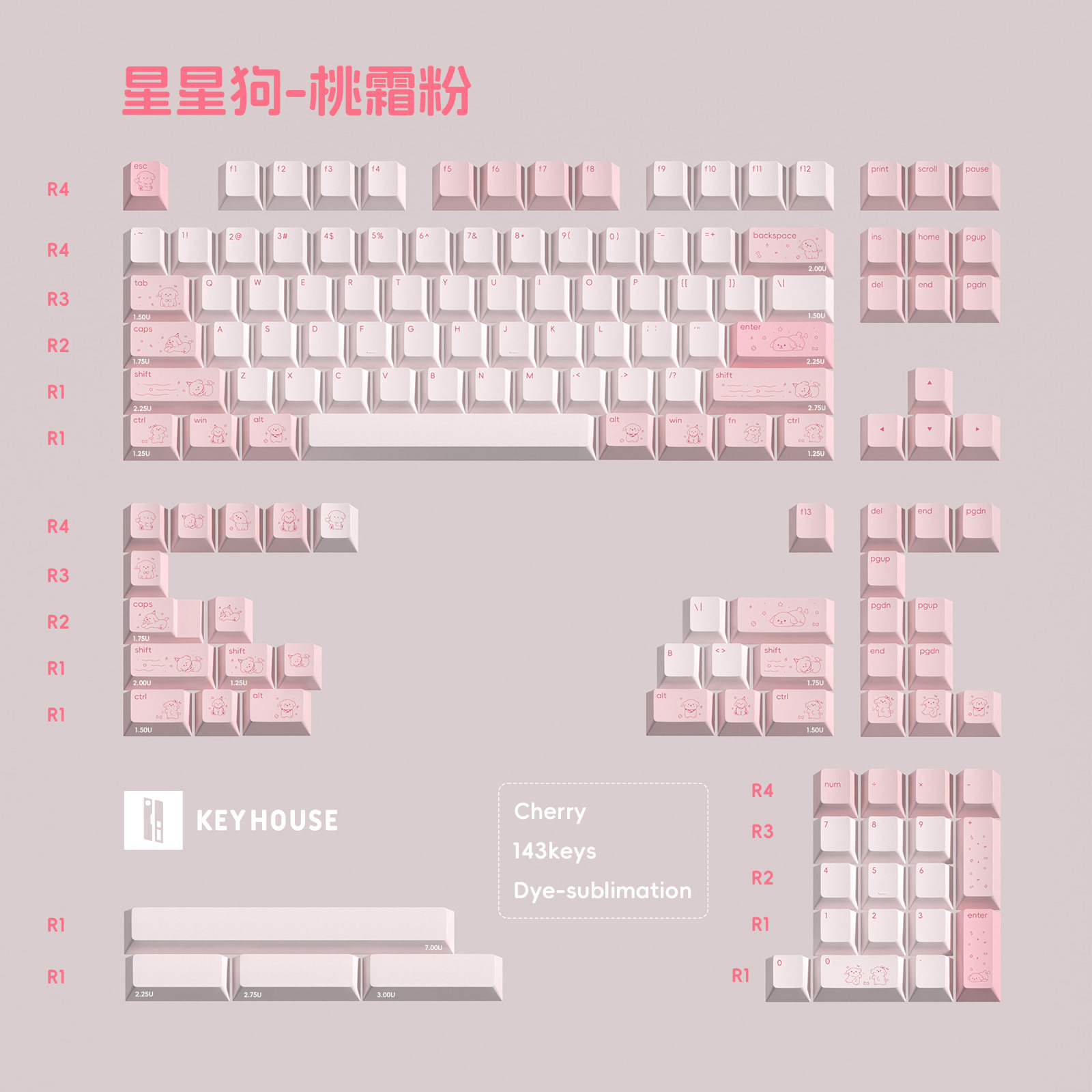 原厂PBT热升华紫色键帽 87键加厚 Keyhouse饰键屋星星狗键帽 雨75