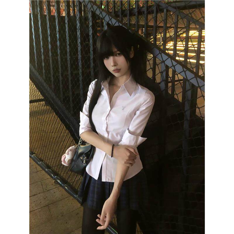 秋季 女学院风制服套装 校供感白衬衣 衬衫 川岛jk小栀川白色收腰长袖