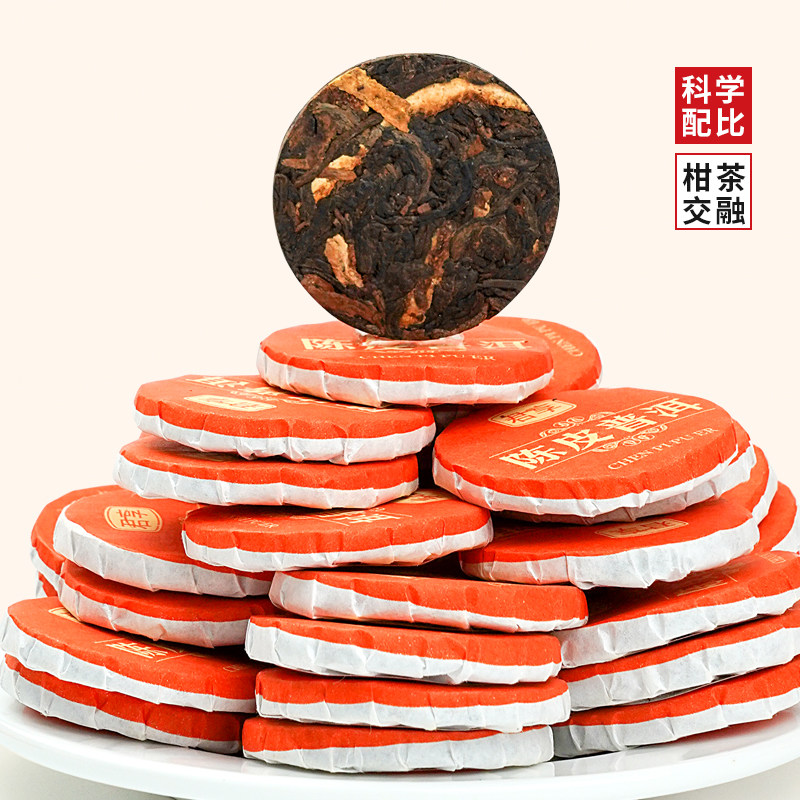 陈一凡 普洱茶熟茶宫廷普洱陈皮柑普茶小茶饼 陈皮普洱茶小方片