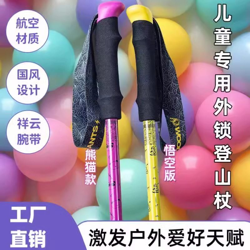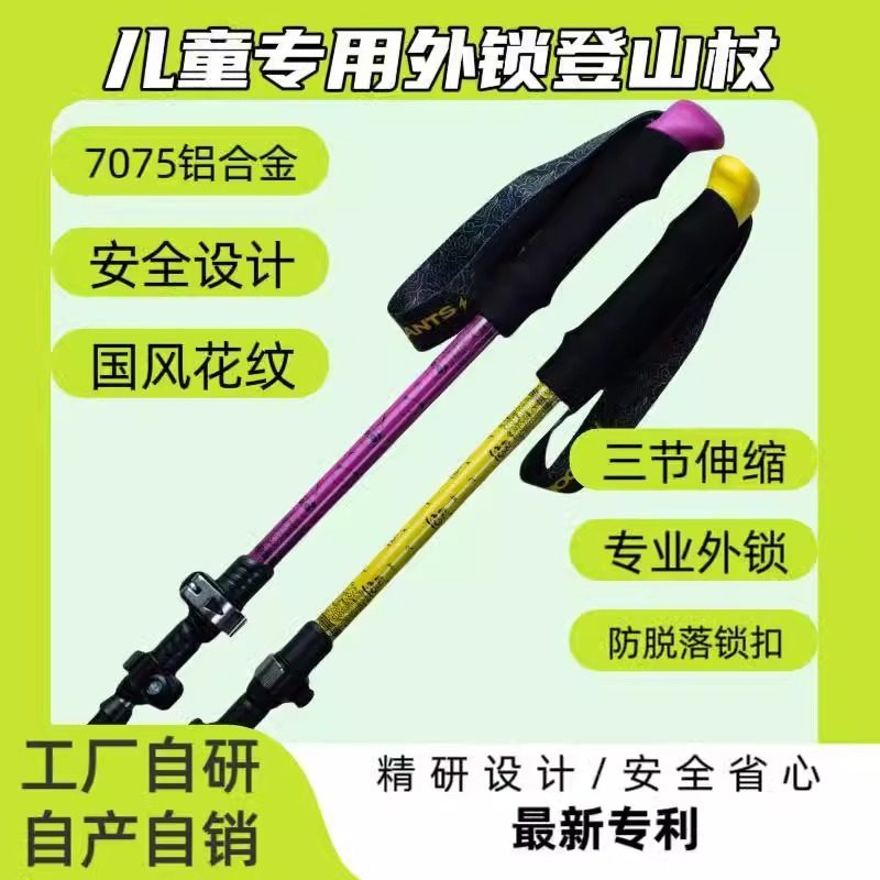儿童登山杖户外徒步装 备手杖铝合金超轻折叠伸缩拐杖专业爬山棍
