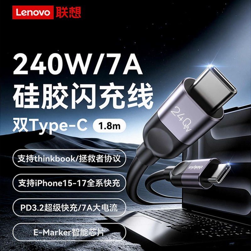 联想thinkplus原装 65W口红电源1.8米PD双C线100W充电线TypeC手机电脑平板240W伸缩7A功率快充线冲电线