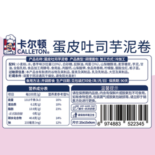 卡尔顿蛋皮吐司芋泥卷夹心面包休闲零食营养早餐A2 丁禹兮代言