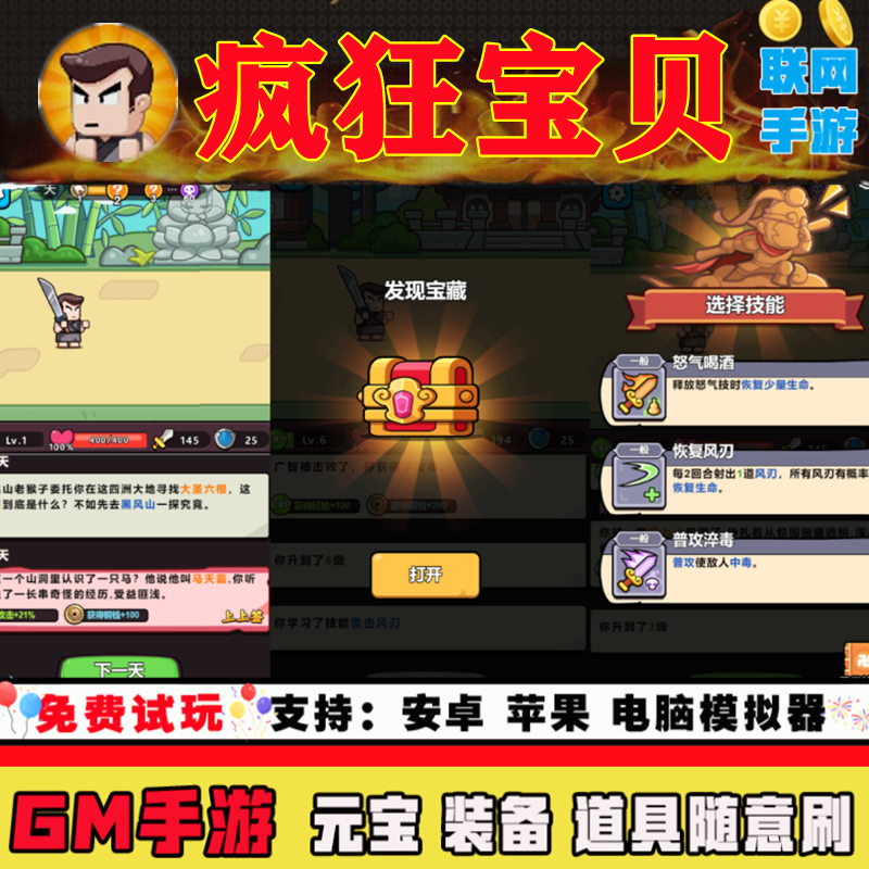 游戏安卓i 破译免费版 os鸿蒙联网 宝钻石内部号辅助折扣礼包兑换码 疯狂宝贝手游无限GM后台道具元