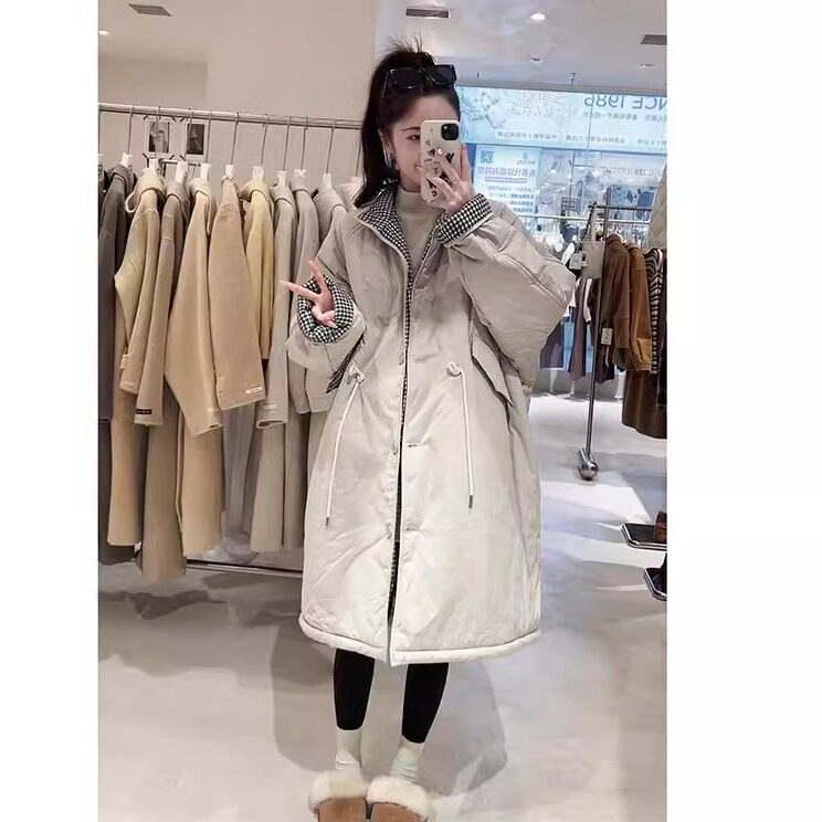 格子冬季 袄子时尚 棉衣收腰棉袄保暖外套加厚 棉服女新款 诺初孕妇装