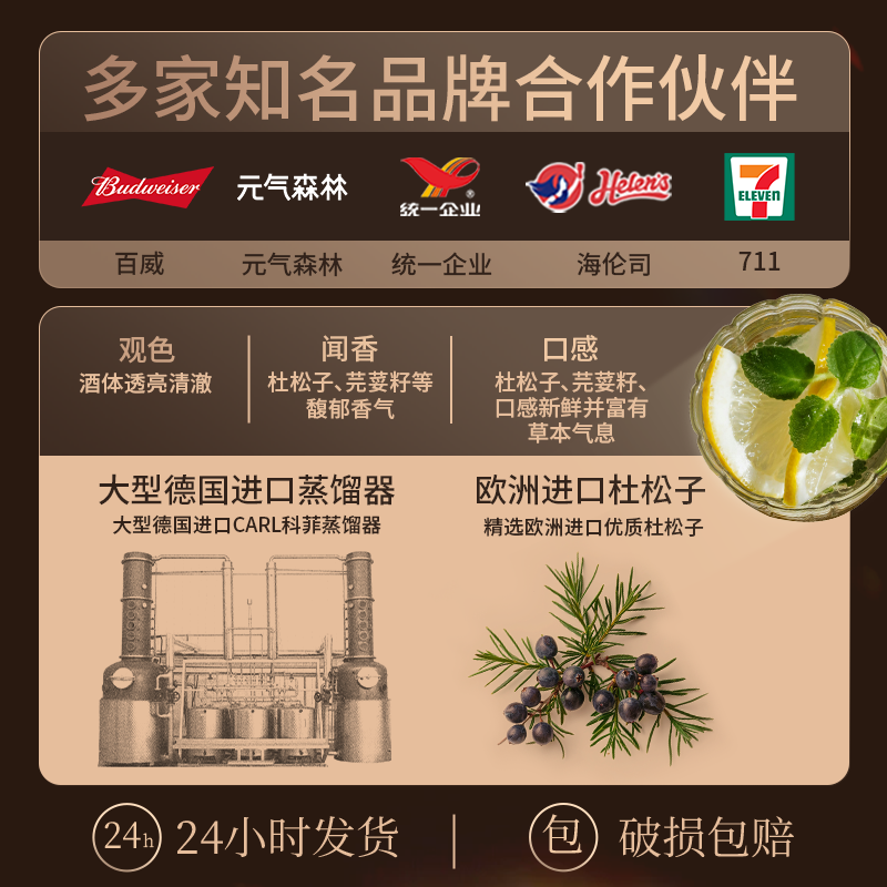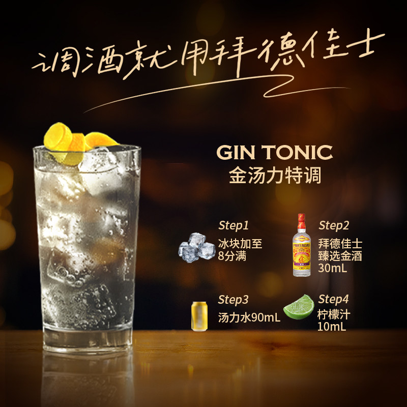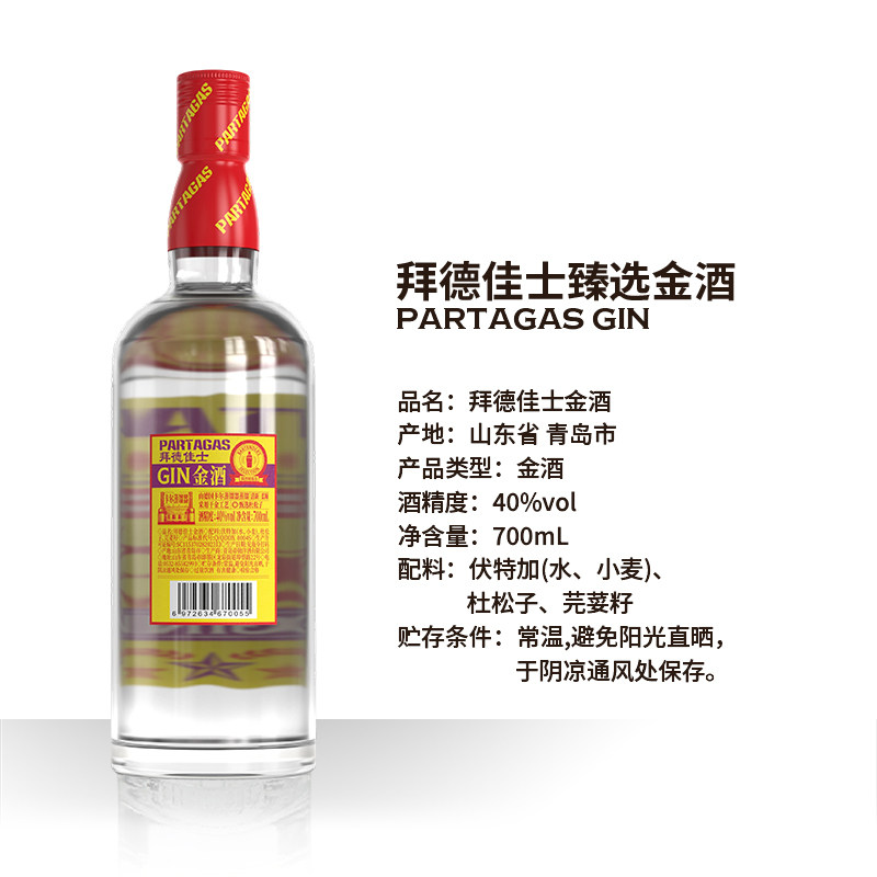 拜德佳士金酒杜松子酒gin酒金汤力酒鸡尾酒调酒基酒6瓶12瓶整箱