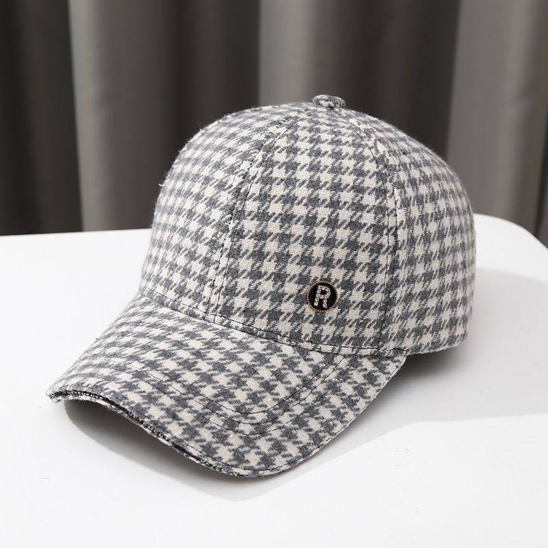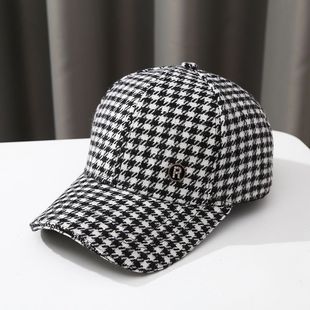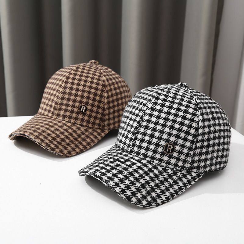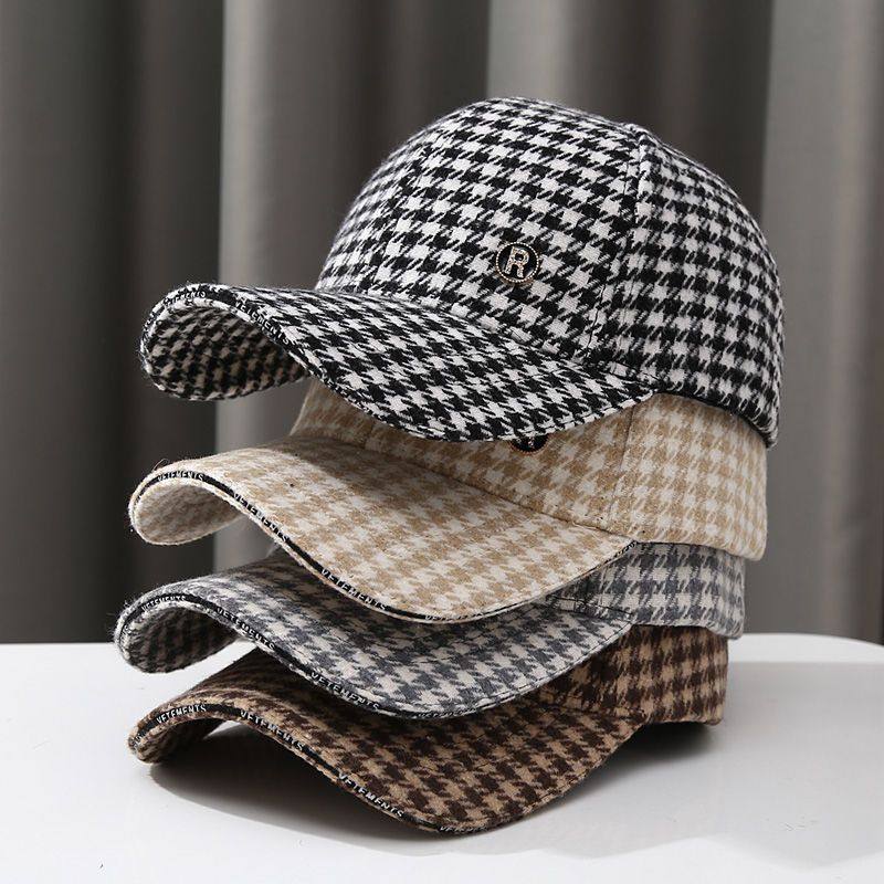 防晒棒球帽子女士 ins千鸟格百搭时尚 秋冬季 毛呢格子鸭舌帽女韩版
