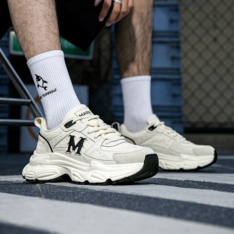 男款 男鞋 春季 潮流低帮皮面增高休闲运动鞋 新款 马克华菲厚底老爹鞋