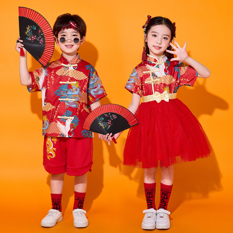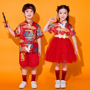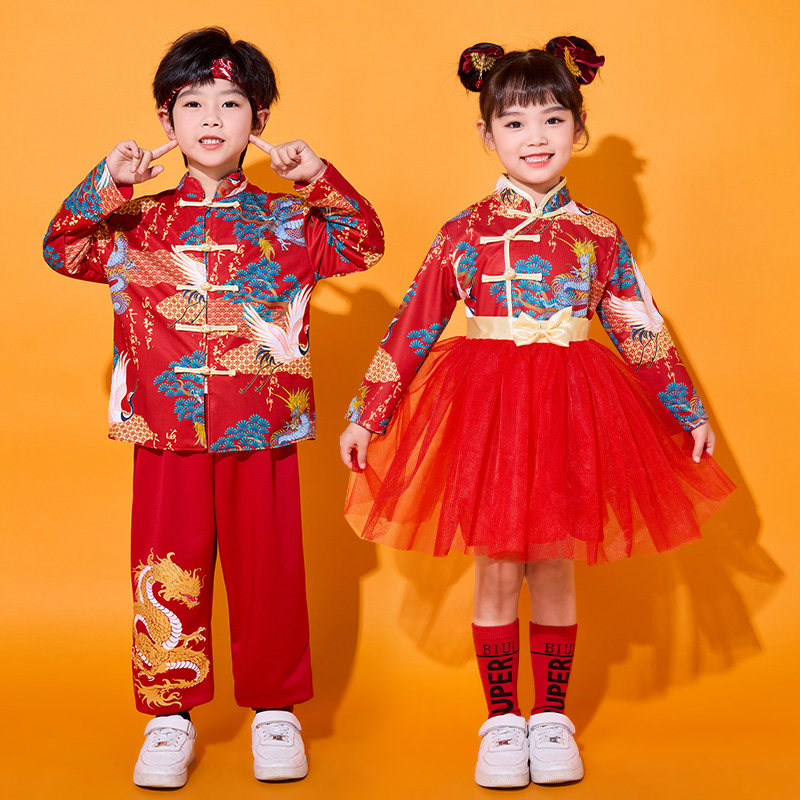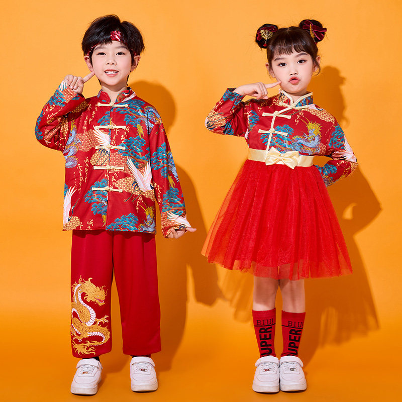 儿童元 旦喜庆演出服腰鼓秧歌服说唱中国风开门红幼儿舞蹈服拜年服